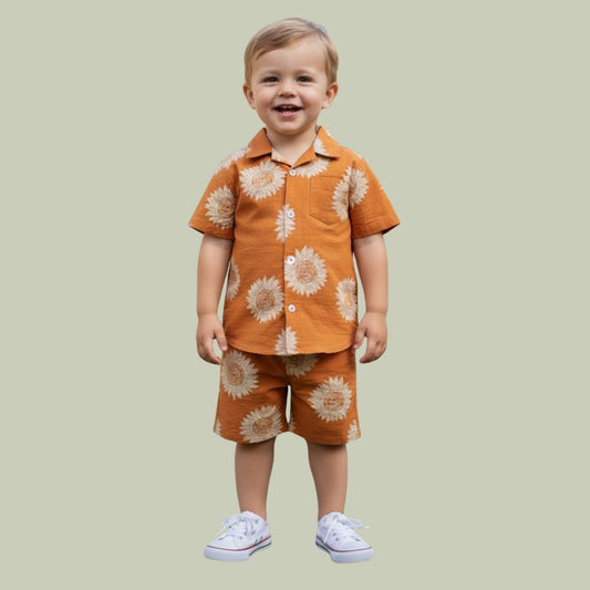 Boys Printed Cotton Blend Casual wear Comfortable Cap Sleeve Co-ord Set, Animal Print Co-ord Set