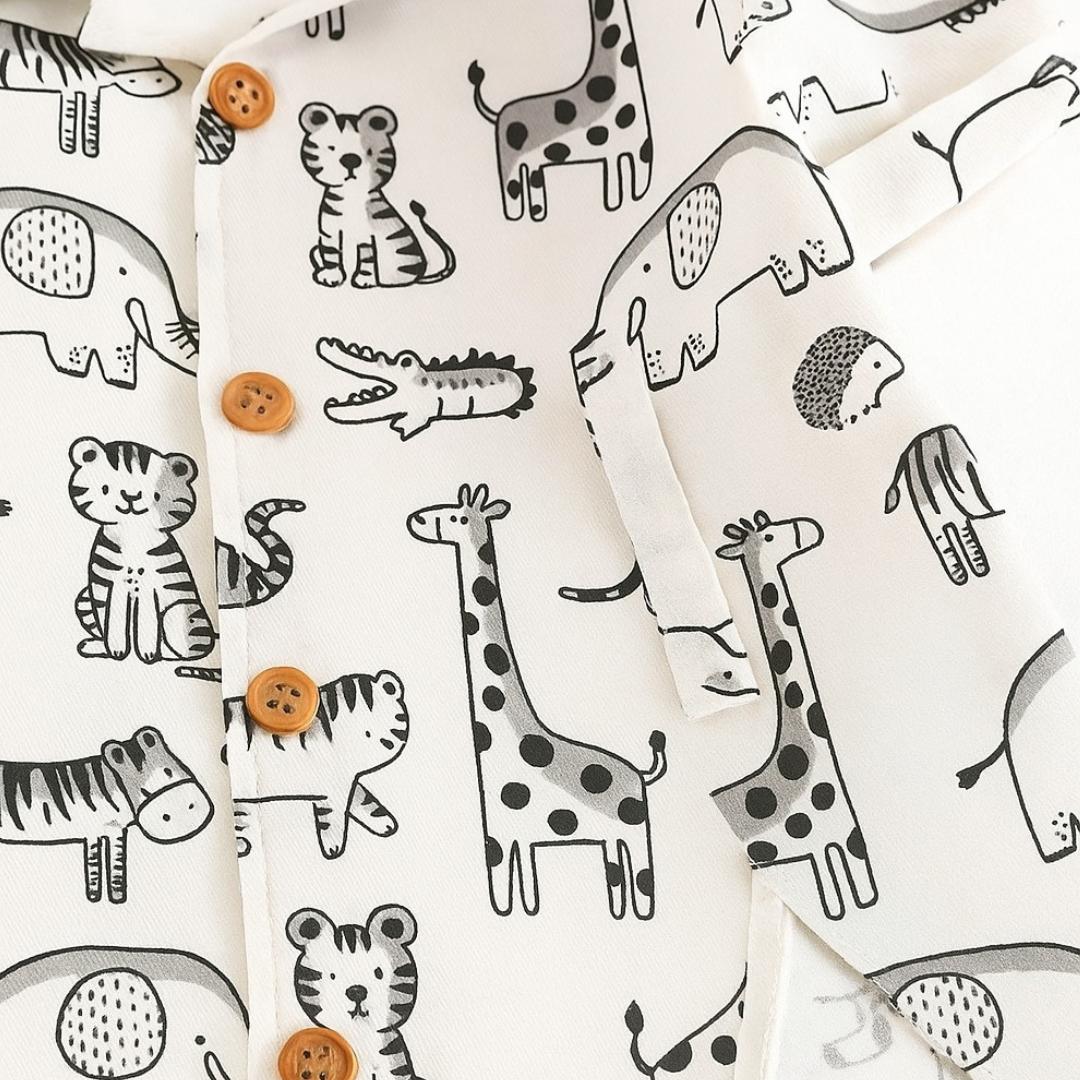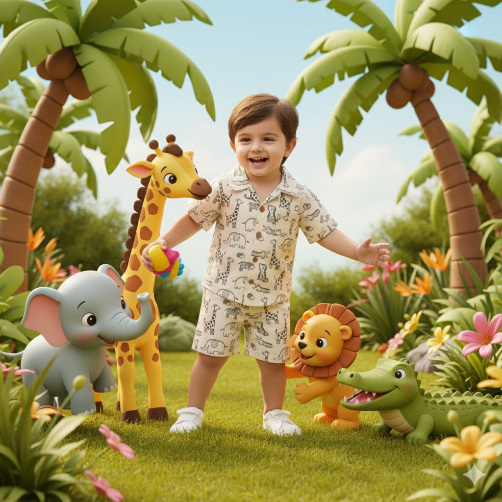 Boys Printed Cotton Blend Casual wear Comfortable Cap Sleeve Co-ord Set, Animal Print Co-ord Set