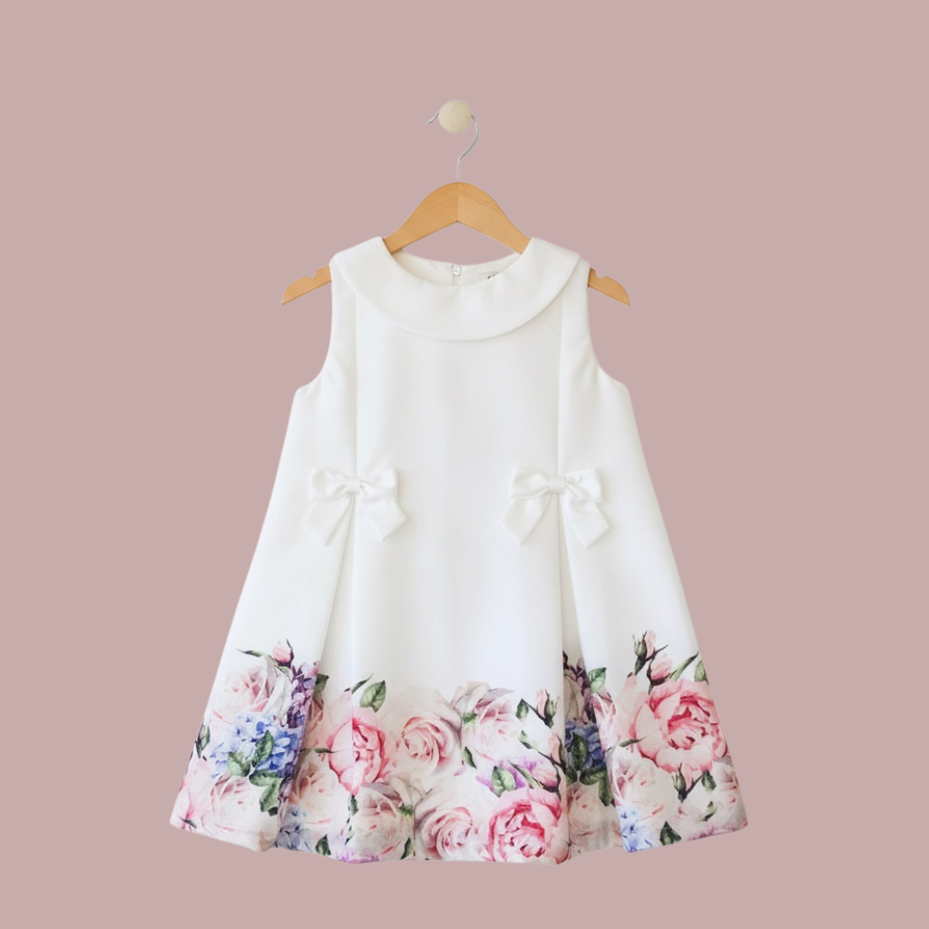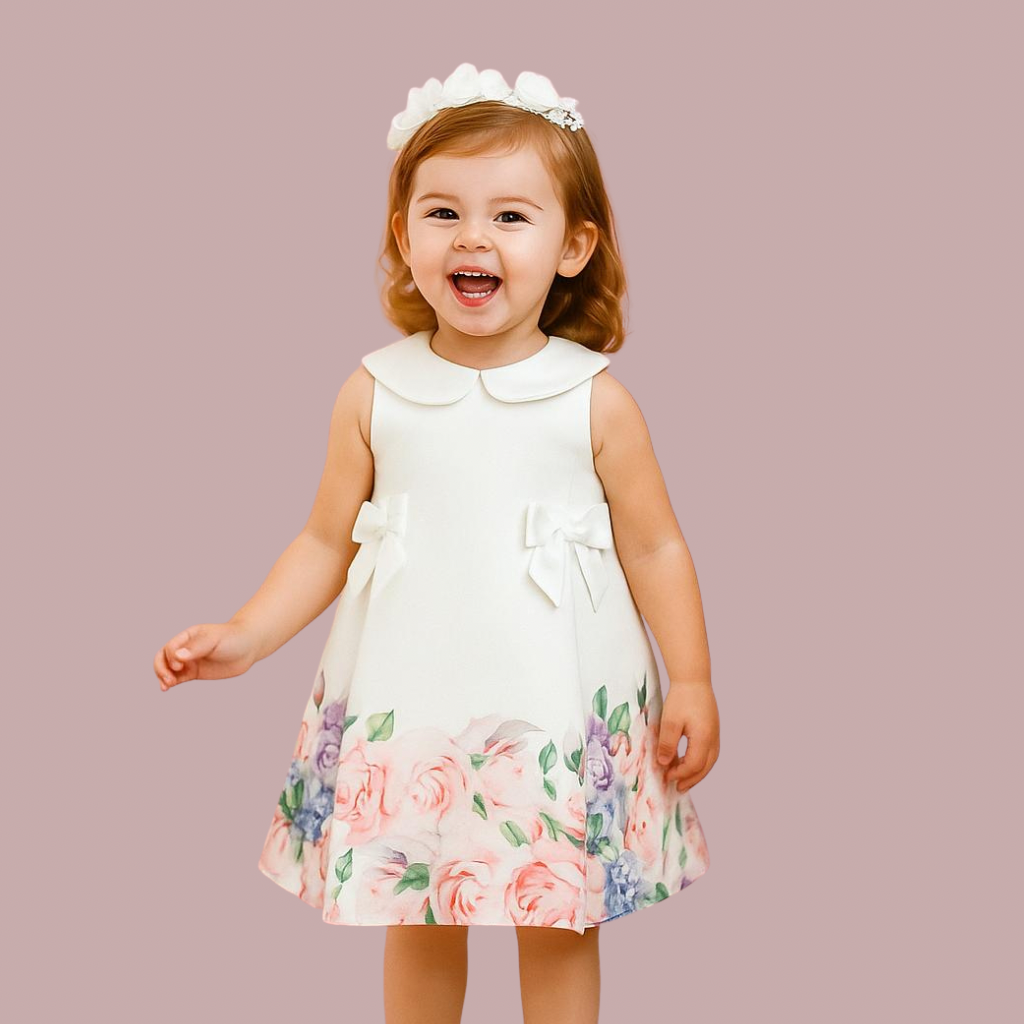 Color Full Flower Stylish White Digital printed Baby Girls Dress, Daily wear Frocks