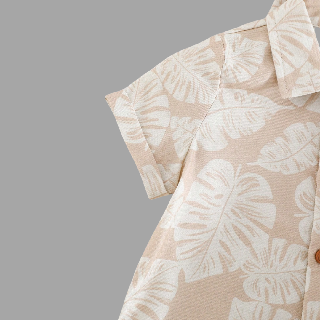 New Leaf Print Shirt & Shorts Set for Kids | Unisex Rayon Co-Ord Summer Cotton Outfit | Regular Fit Casual Wear Clothing for Baby & Toddler Boys
